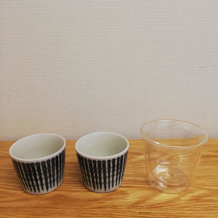 汁椀は2つしか持っておらず、家族分必要になった時はそば猪口や耐熱グラスで対応しています。