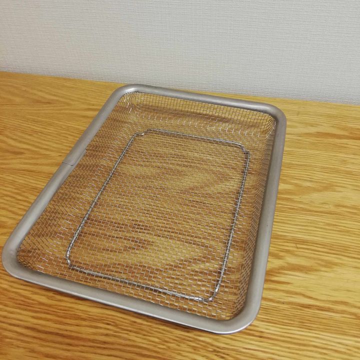 以前は大中小の深いザルを持っていましたが、浅型のメッシュトレイでも代用できることを発見しました。