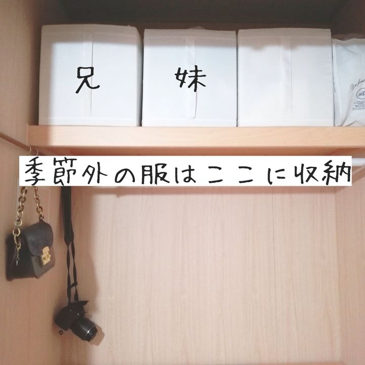 シーズン服を兄妹で左右に分けて掛けています。