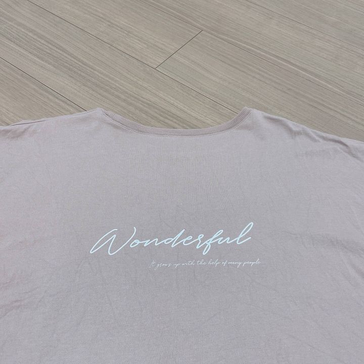 やや大きめのバックロゴTシャツを選ぶと今年っぽさも出しつつ、体型もカバーしてくれます。