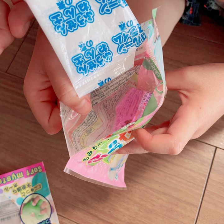 ピンク色のパッケージはピンク色のねん土、水色のパッケージは水色のねん土でした。