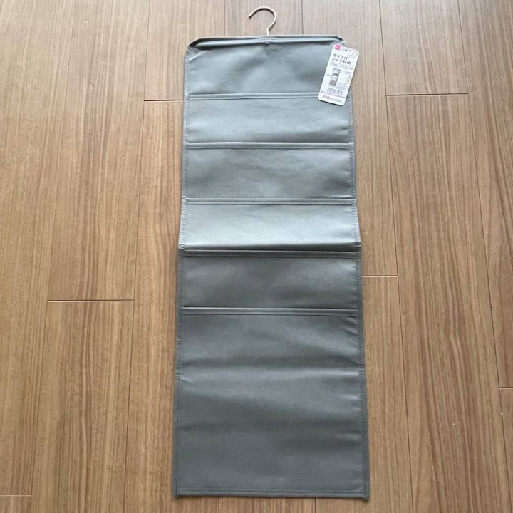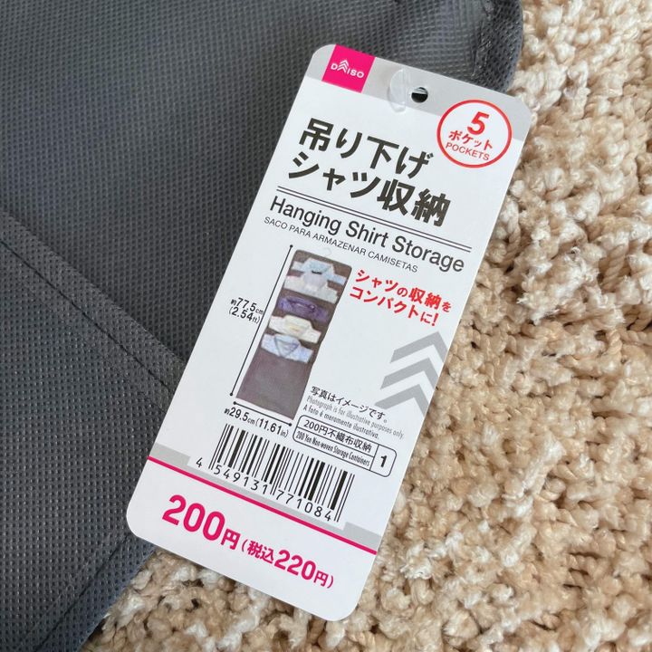 そんなときに発見したのは、ダイソー商品の「吊り下げシャツ収納」です。