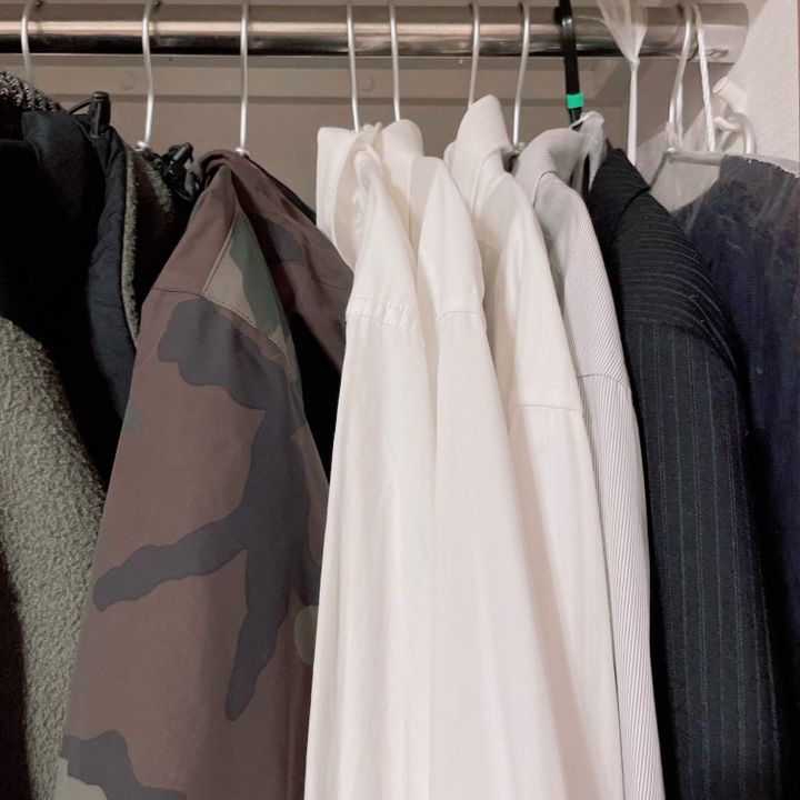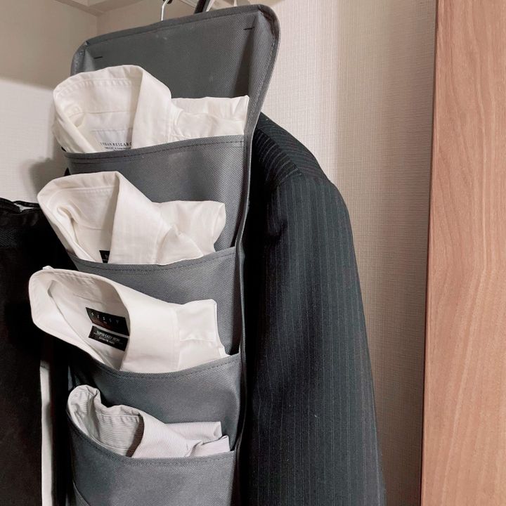 【ダイソー】コロナ禍で出番が減ったスーツのシャツをすっきりと収納!