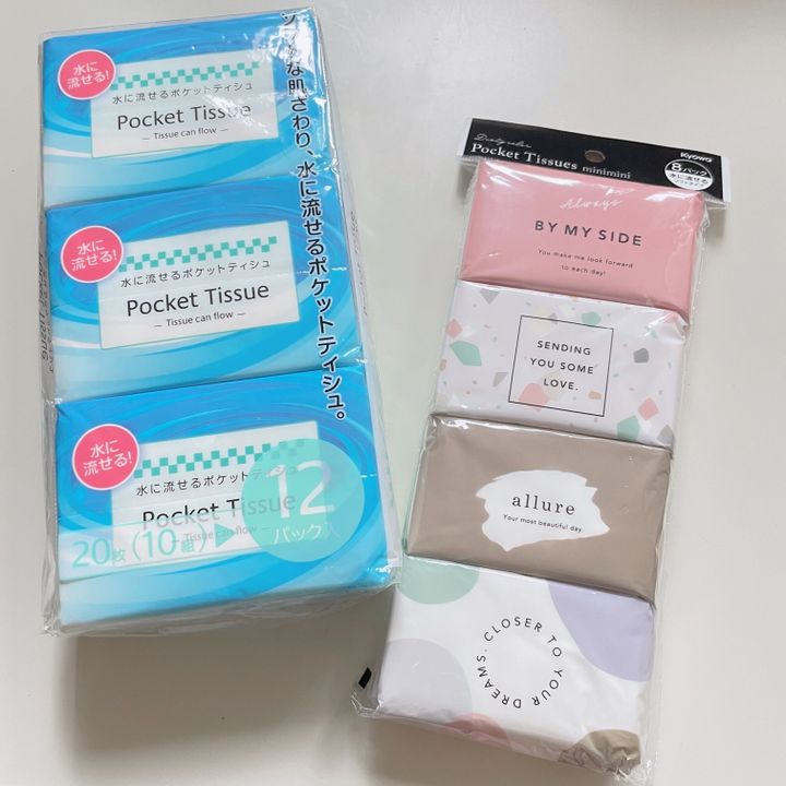 ポケットティッシュは、必ず「流せるタイプ」を選んでいます。