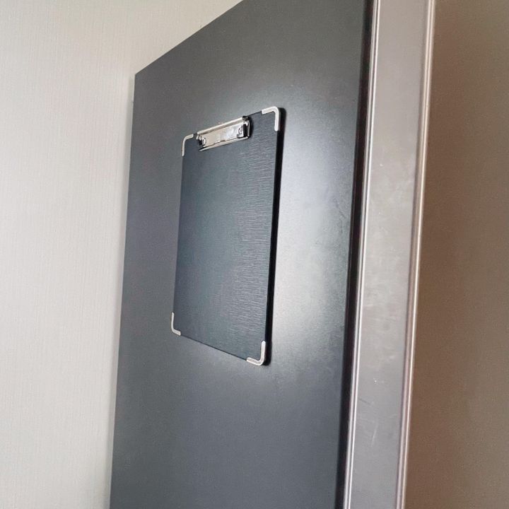 どうしても手が離せない時にはマグネット付きのバインダーに挟んでおきますが、あくまで非常時の対策なので、基本は何も貼らないようにしています。
