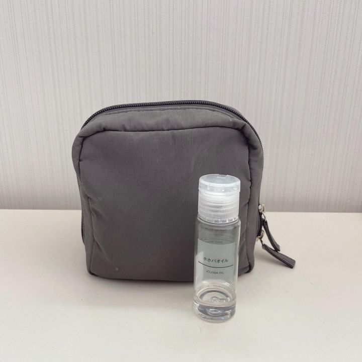 以前は、複数のスキンケア用品を所持していましたが、現在はミニサイズのホホバオイル1本だけ持っていくようにしています。