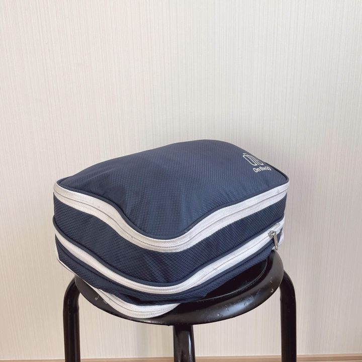 中央のファスナーを閉めるだけで圧縮でき、衣類スペースを50%も節約できるそう。