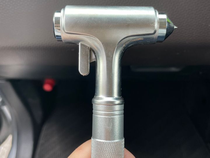 「脱出ハンマー」は、車内に閉じこめられた時に、軽い力で窓を割るための道具。