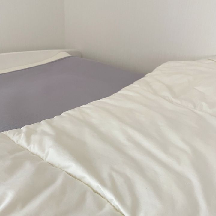 カバーなしにすることで、掛け布団の表面素材のポリエステルのひんやり感が体感できます。