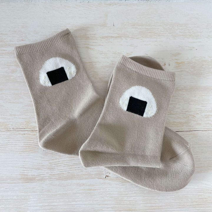 インパクト大で見るだけでほっこりするおにぎりの靴下は、お友だちからも好評だったそう。