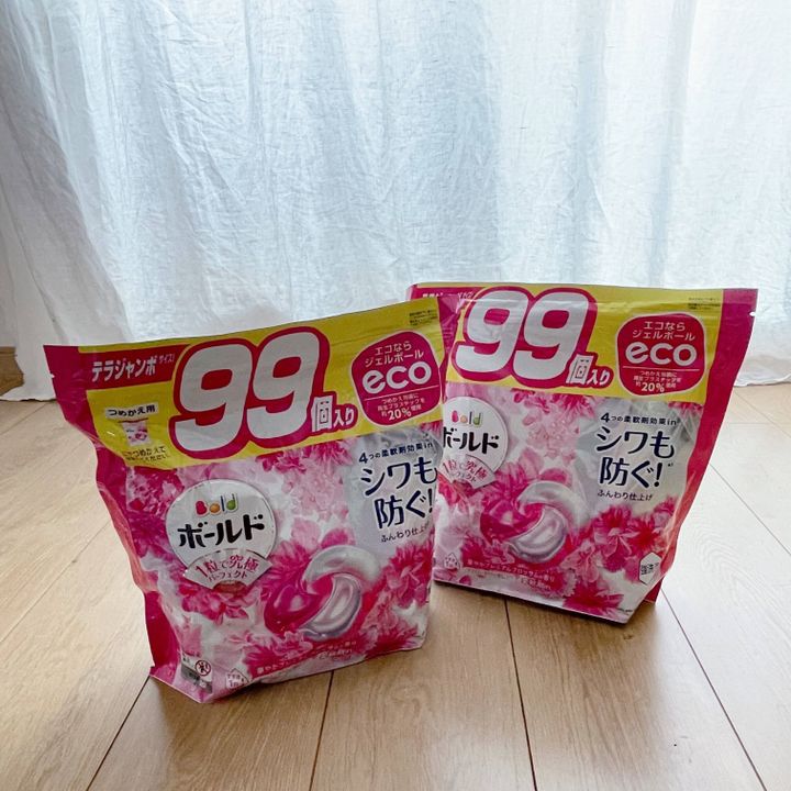 Amazonプライムのセールでは、ボールドのジェルボールが99個で30%オフの1,999円(税込み)になり、1個あたり約20円。ドラッグストアでは買うと、1個30円くらいになるのでAmazonのセールで買うのが断然お買い得です。