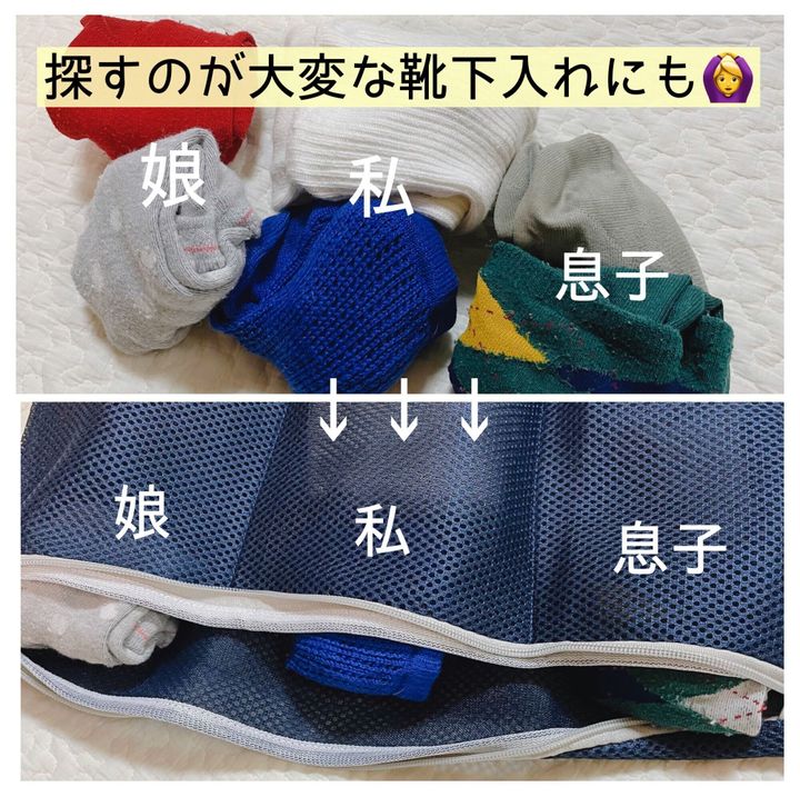 ネットの中でバラバラにならないですし、ネットが少し透けているので、外から見ても何が入っているか確認しやすいです。