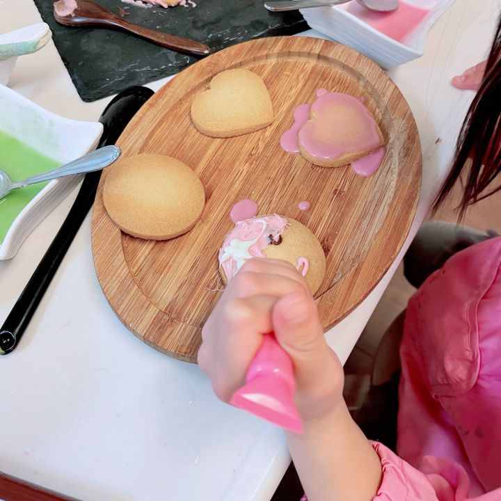 細かいことはできませんが、好きな色をスプーンでクッキーに塗っていくだけなので楽しく出来ました。