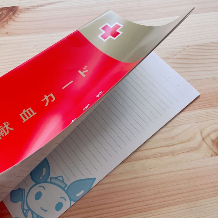 登録特典として、その場で献血カードデザインのノートをいただきました。