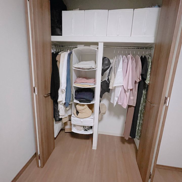 「とにかく管理がラクな収納へ!」という目標を掲げ、衣装ケースも全て手放し衣替えが不要なクローゼットを完成させることができました。