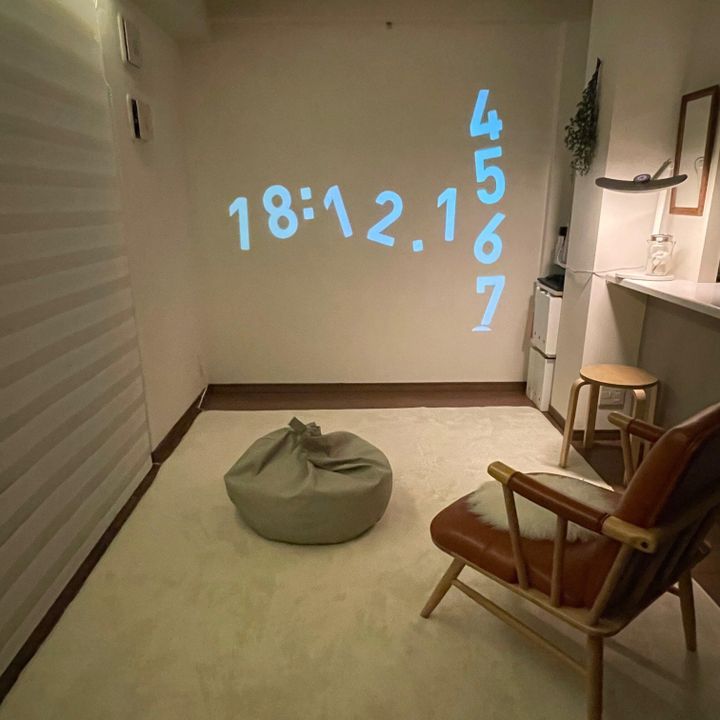 何もないから壁一面に映せる!ホームシアターが夜の楽しみ