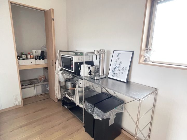 キッチンは広めで、パントリー付きでした。前のマンションよりも収納量はアップしたので、増やしすぎないように注意が必要です。