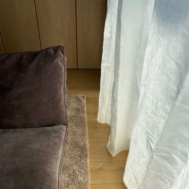 これは好みなのでしょうが、個人的にはきっちりしている既製カーテンよりも、多少ルーズで少しクシャッとした不細工な1面もあった方が雰囲気が出て落ち着きます。