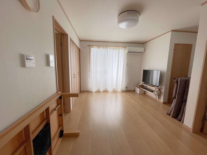 10帖ほどのリビングダイニングスペースがありますが、リビングを中心とした間取りのため、実際には5帖ほどはデッドスペースになっています。