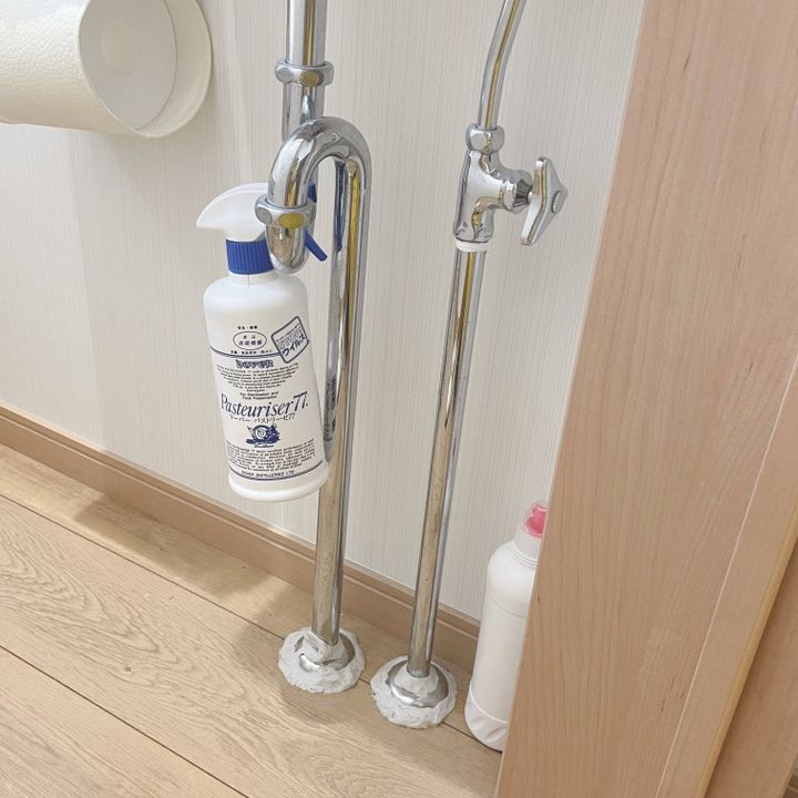 3.アルコール除菌スプレーは配管に引っ掛ける
