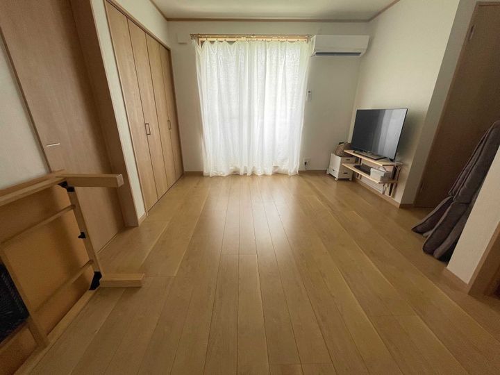 ドアや通路がたくさんあるリビング中心の間取りのため、実質約5帖ほどしか家具を置くスペースはとれません。