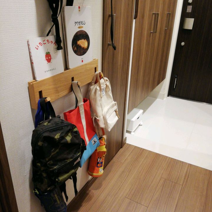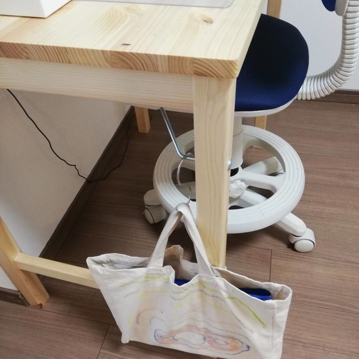 そんな時近くに置いておきたい習い事の課題はバッグのままフックに掛けて座ったままでも出し入れしやすくしています。