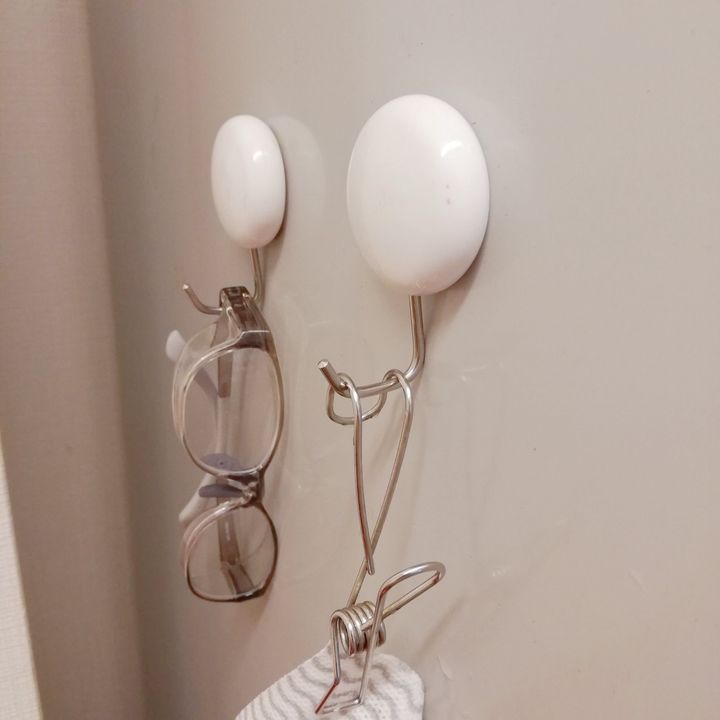 最近購入した花粉症用の眼鏡を掛けており、お出かけの時や室内でも花粉が気になる場合、別用途ですが玉ねぎを切りたい時もさっと掛けれるようにしました。