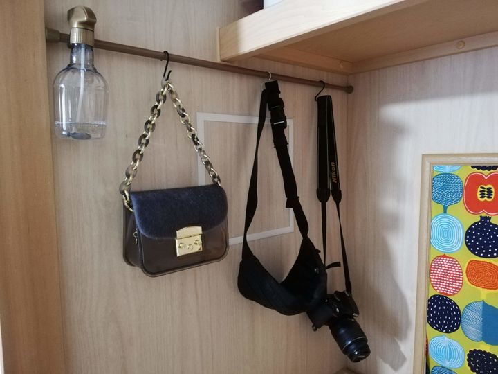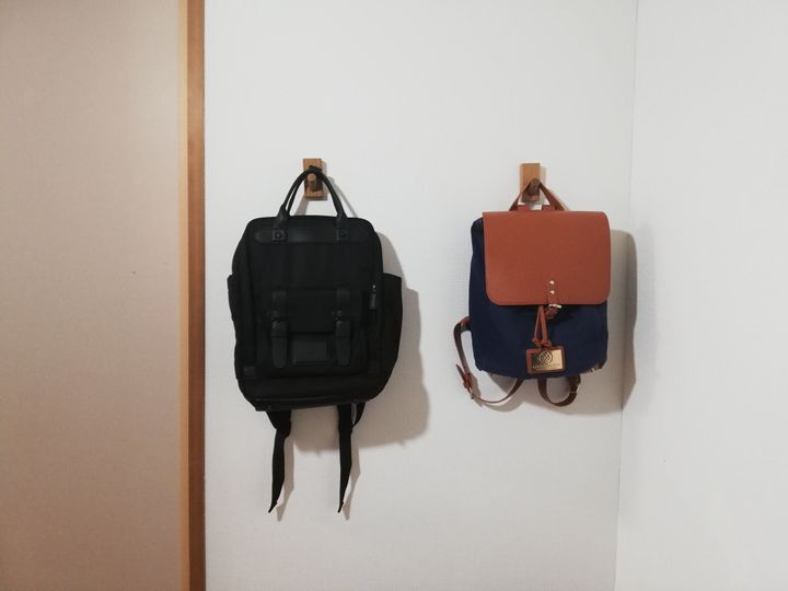 バッグはクローゼットに置きがちですが、壁を利用することで無駄なく取り出しやすい収納が実現できます。