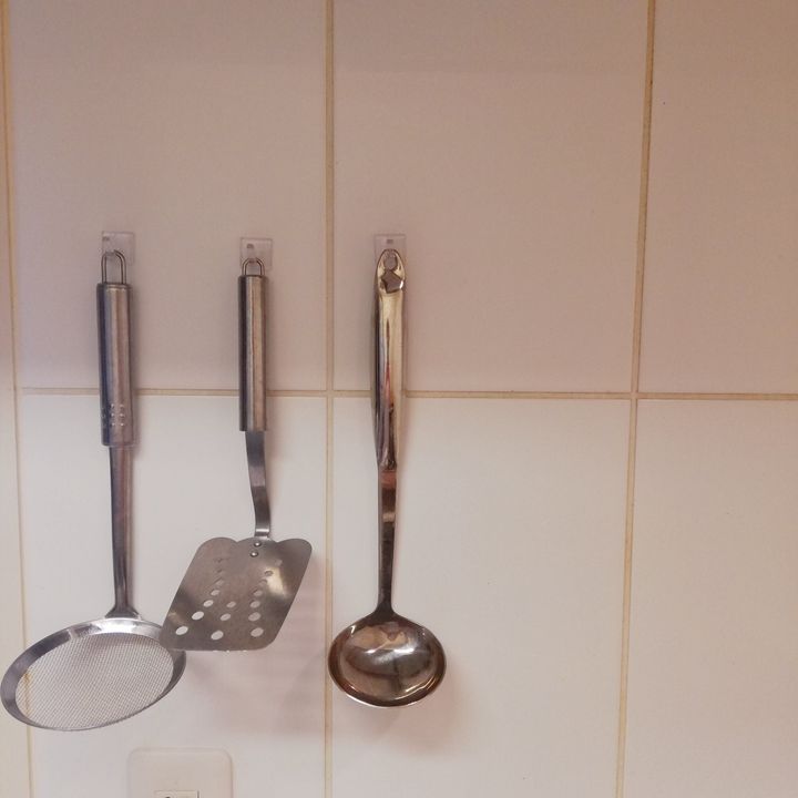 専用のレードル掛けだと不要になった時に処分に困りますが、透明フックであれば気軽に取る事ができます。