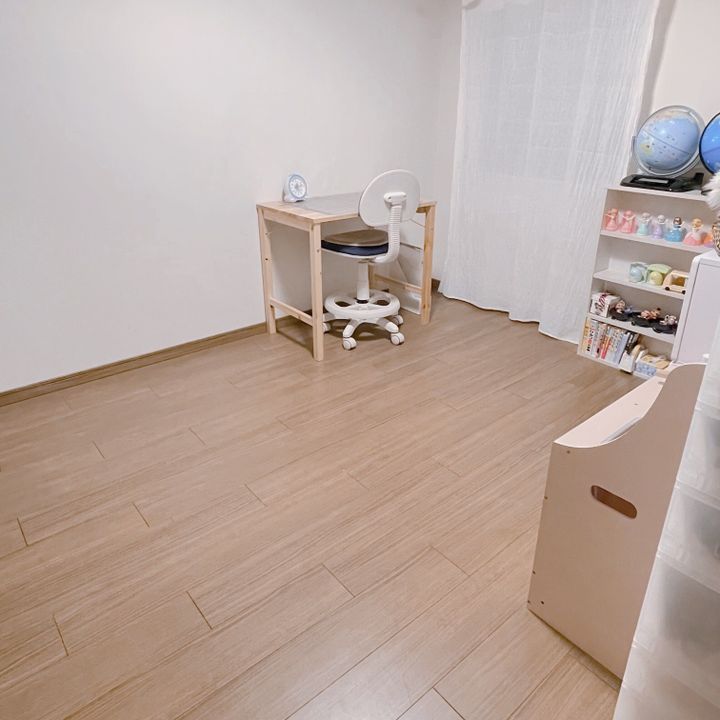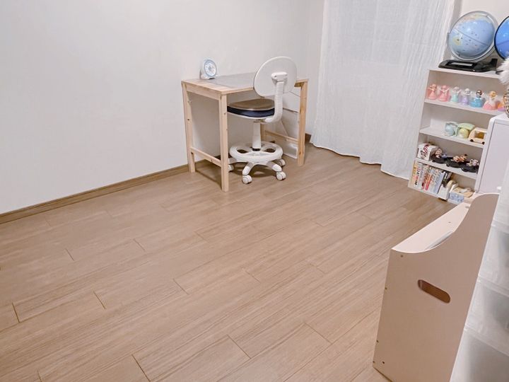 白いカーテンを足したりシンプルな机と椅子を置くことで、温かみのあるインテリアに仕上げました。