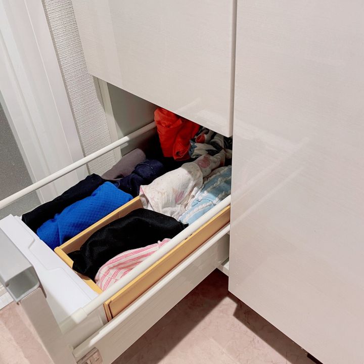 洗面台引き出し下段に置くことで、交換作業が子どもだけで完結できています。