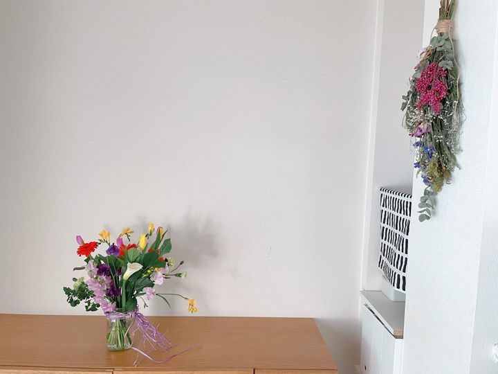 例えば、テレビ台やキッチンカウンターに物を置いてしまう癖があった場合は、あえて大きめの観葉植物やお花を飾ります。