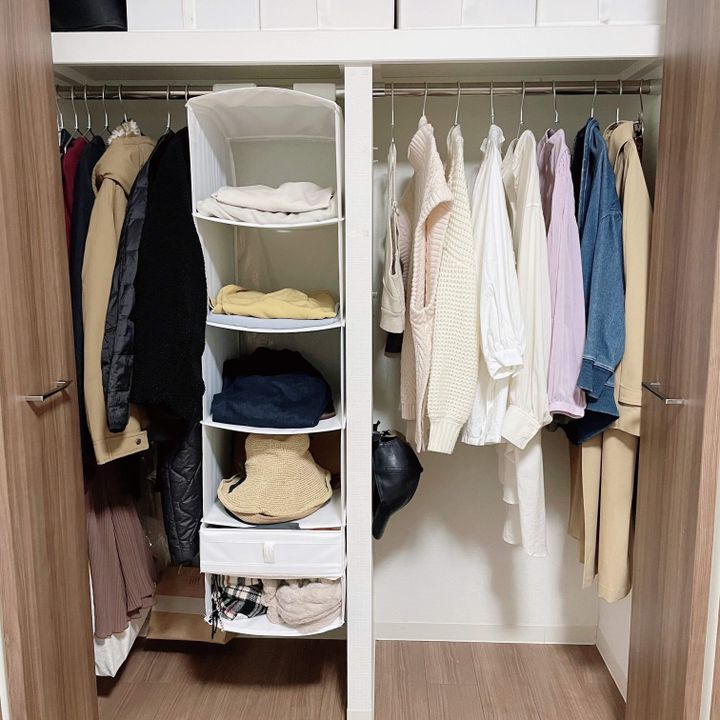 ケースが必要なくなるまで洋服を減らした結果、全ての服が掛けられるようになりました。