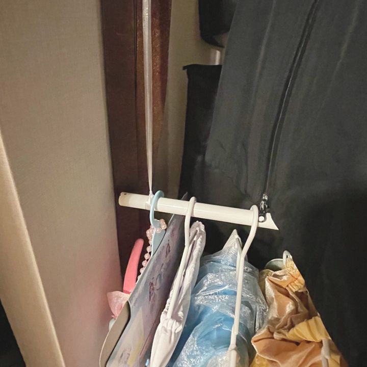 しっかりした専用の商品もありますが、耐荷重さえクリアしておけば、棒は100均のつっぱり棒でかまいません。