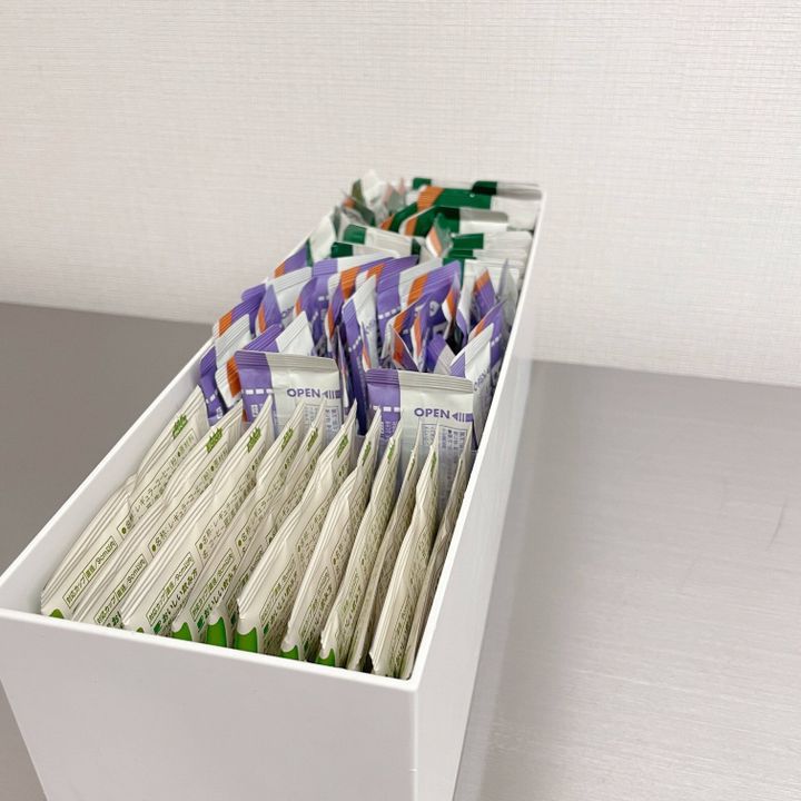 ワイヤーバスケットは奥まで引き出せない為、スティックタイプのカフェオレが取り出しにくくなってしまいました。