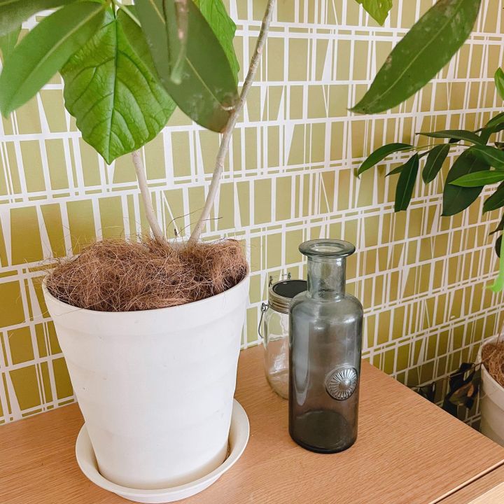 アクタスで購入した透明感のある青色のフラワーベースは、コーナーの植物コーナーに一緒に置くとアクセントになって、柔らかい雰囲気をつくることができます。