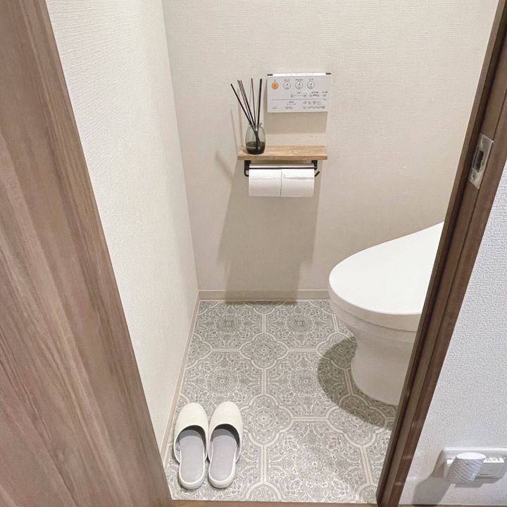 トイレはペーパーホルダーとクッションフロアをチェンジ。