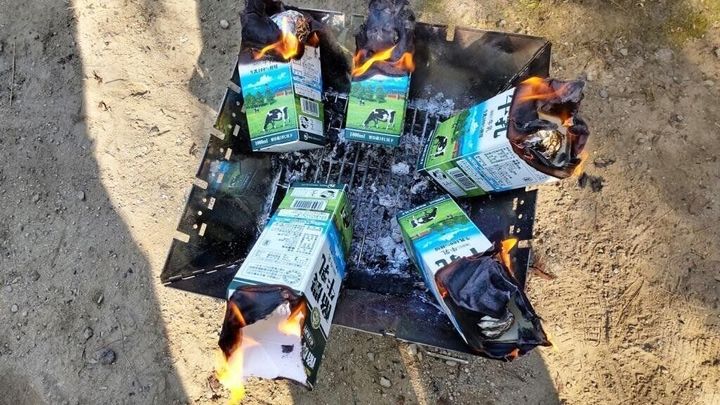 牛乳パックが炭代わり(※牛乳パックに直接着火して燃やします)で、炭も要らないから、準備も片付けも本当に簡単です。