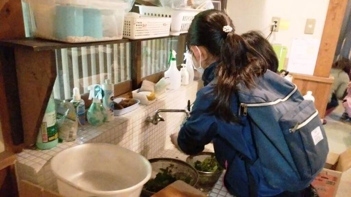 4種類の野草を洗ったり、刻んだり・・・