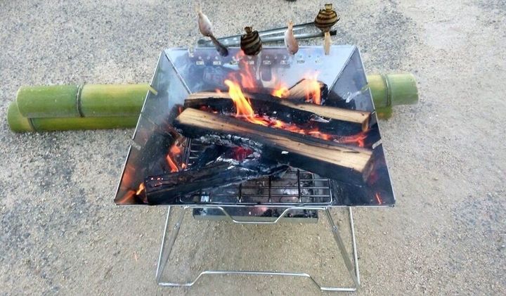 竹串を作り、焚火台で塩焼にしていただきました☆