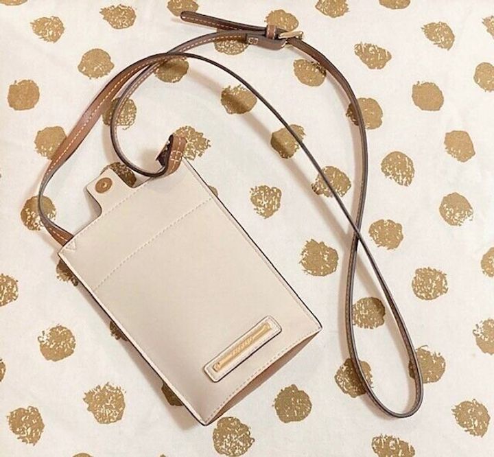 今日の記事のトップ画でも、大きな白いバッグに加えて、こちらのミニポーチを斜めがけしてます。
