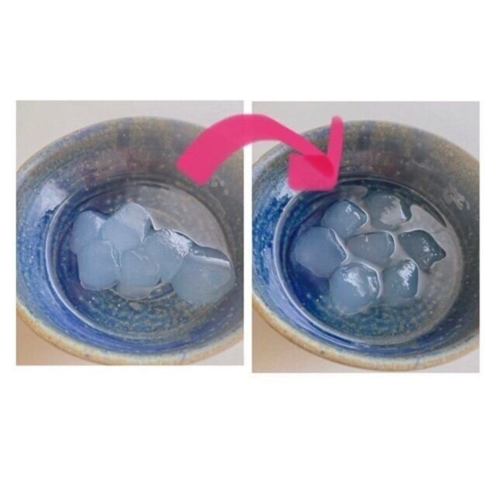 買ってきた状態ですと、わらび餅はべたべたとくっついているので、水の中で、バラバラにほぐすと使いやすくなります。使いたい分だけ、使うことができるのもいいところ。