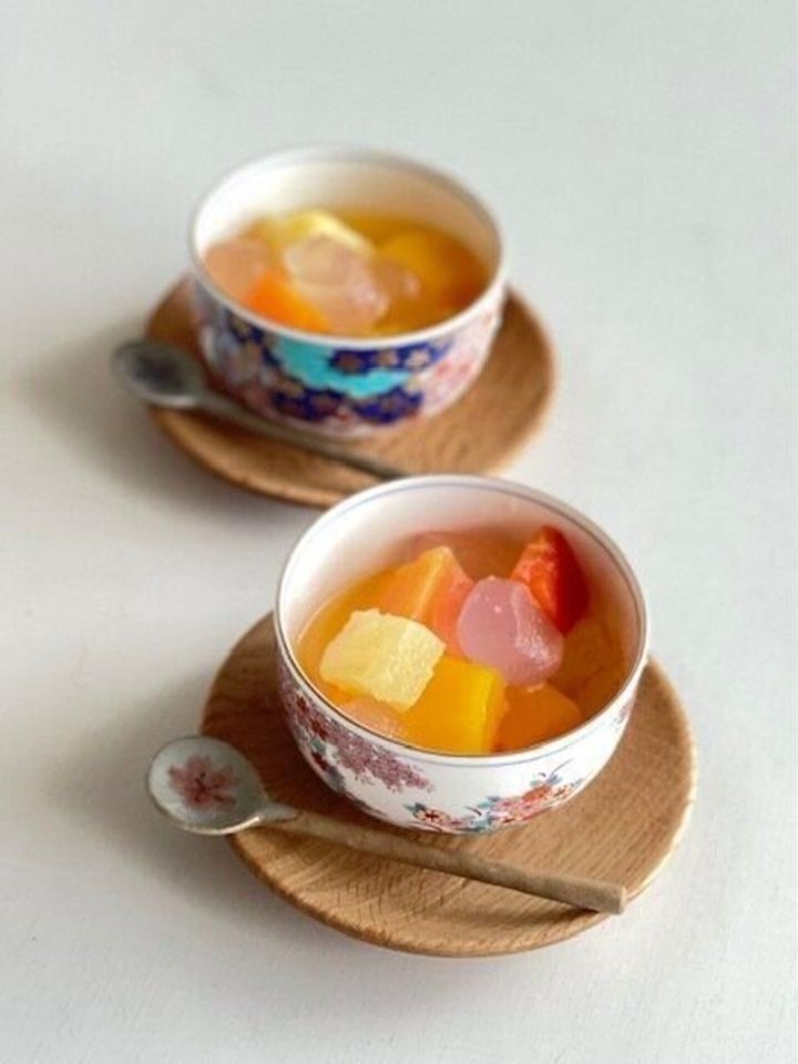 ガラスの器に盛り付ければ、もっとさわやかな感じになりますね。私は来客がなくなり、使う機会が減った蓋つきの茶器を、デザートカップとして使っています。
