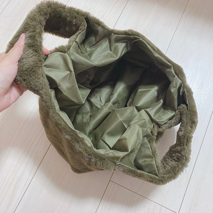 次はふわふわな見た目も可愛い「ナチュラルボアトートバッグ」!こちらは毎年人気のデザインで今年はこちらのカーキが可愛いなと思い購入しました!