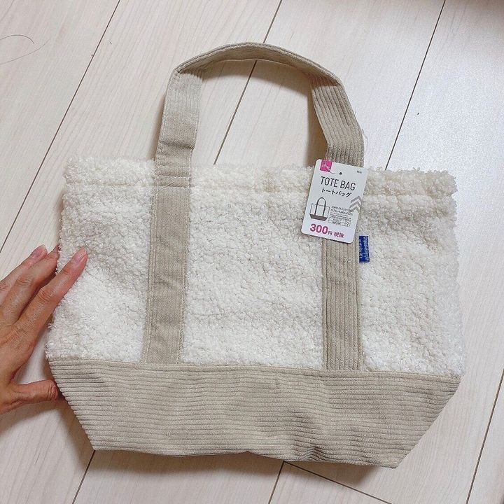 ダイソーで発見したのは、秋冬らしいコーデュロイとボアのトートバッグ♡