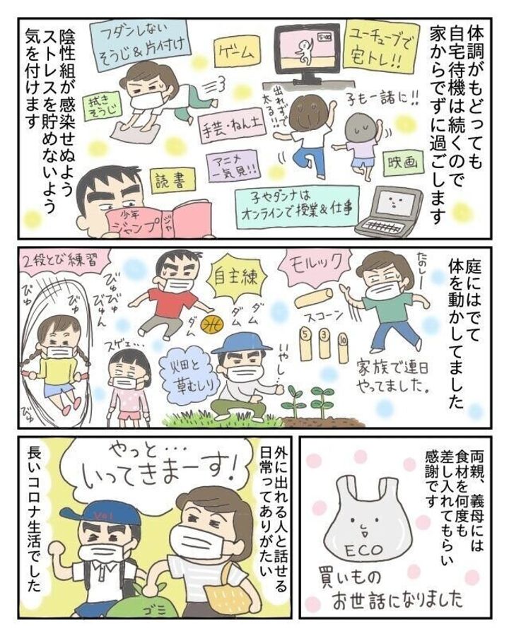 コロナになり軽症だったとしても仕事や学校を長く休むことになったり、感染を広げたりしてないかなど、不安なことも多かったです。