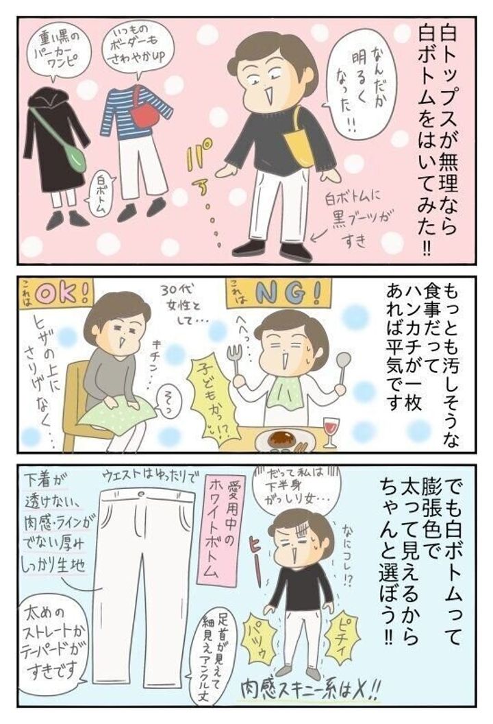 本当は明るい白も着て軽やかさわやかになりたいんです。