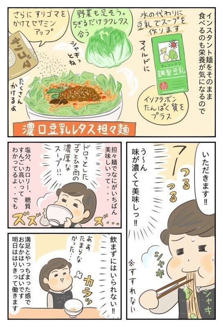 普通では豆乳って飲めないんですが坦々スープに入れると美味しくとれます。