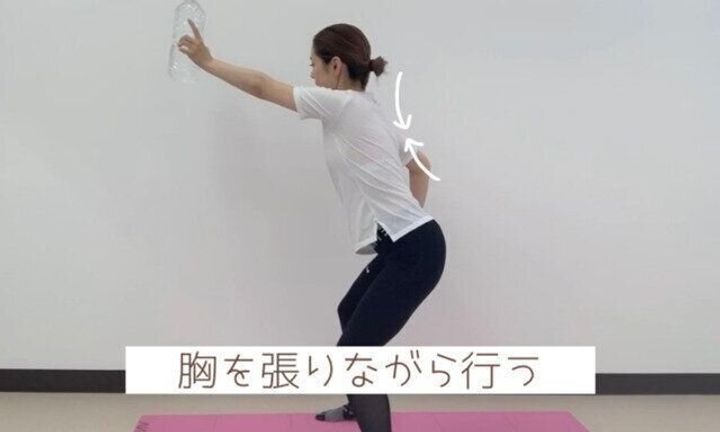 ペットボトルを用いることで負荷量がアップし、しっかり効かせることができるので、お家トレーニングの際はとってもオススメです。