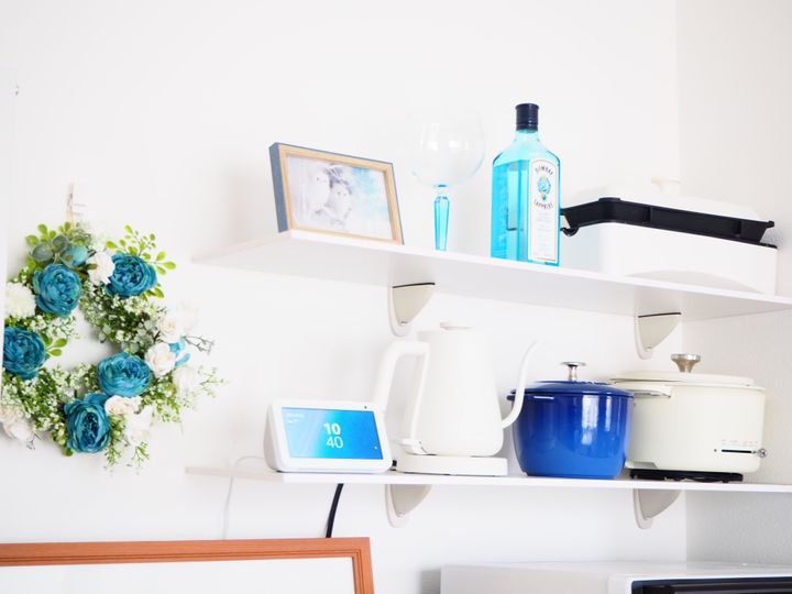 私はテーマカラーを決めてインテリアを楽しんでいます。現在はホワイト×ブルーをテーマカラーに、ナチュラルテイストも取り入れたインテリアをめざしてます。